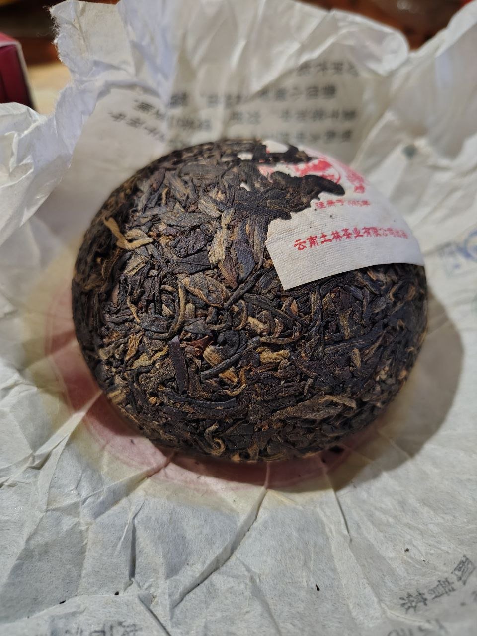 Шен пуер від дуже поважної чайної фабрики Тулінь. 2011 року випуску, органік, вага 150 грамів.
